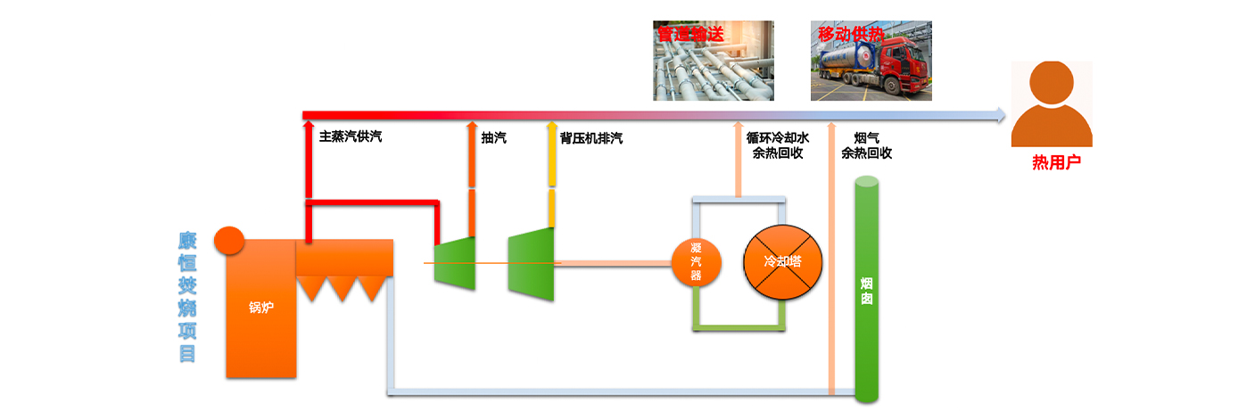 通過移動(dòng)供熱車將垃圾焚燒廠蒸汽運(yùn)輸至用汽企業(yè),采用”一拖三”運(yùn)營,是一種新型的余熱利用與集約化供熱模式,打破了管道運(yùn)輸模式。