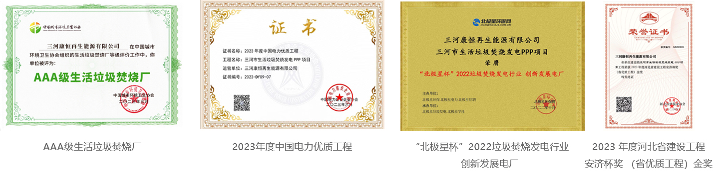 三河項目已通過質(zhì)量、環(huán)境、職業(yè)健康安全管理體系認(rèn)證及生活垃圾焚燒廠運(yùn)營服務(wù)認(rèn)證,獲評國家AAA級生活垃圾焚燒廠。