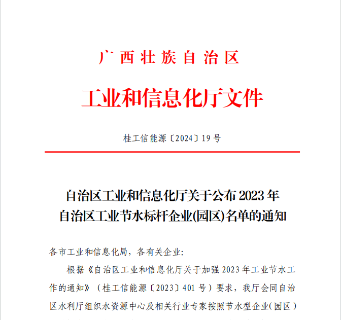 廣西壯族自治區(qū)工業(yè)節(jié)水標(biāo)桿企業(yè)